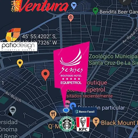 Hotel Senses Equipetrol Santa Cruz de La Sierra de 15 quartos está localizado a 10 minutos de carro do aeroporto de Santa Cruz El Trompillo e oferece piscina e academia. Apresentando aulas de fitness e academia, este hotel 4 estrelas está a cerca de 2 km da Catedral de San Lorenzo.